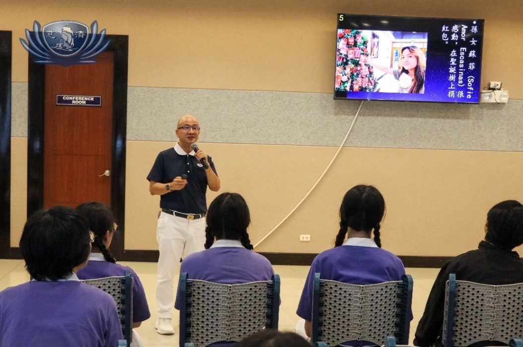 Tzu Chi Philippines Deputy CEO Michael Siao started his volunteer work in Tzu Chi as member of the local Tzu Chi Youth Association. He shares with the young volunteers from Taiwan about his many experiences in carrying out Tzu Chi’s missions namely charity, recycling, disaster relief, and medical assistance through the stories of patients that he met at the Tzu Chi Eye Center over the years.