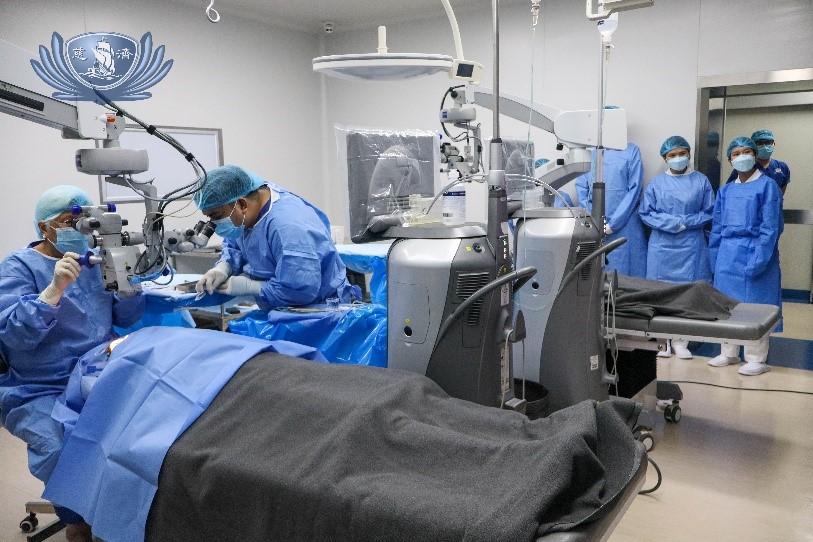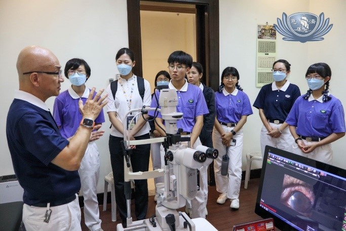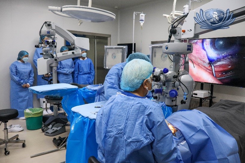 Youth volunteers from Taiwan witness an actual surgical procedure during their visit at the Tzu Chi Eye Center.