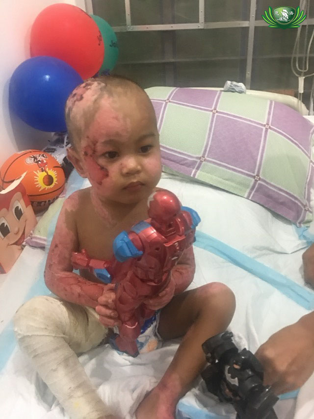 Niño at 2 years old, recovering from his burn wounds when Tzu Chi volunteers met him back in 2019. Photo credit: Tzu Chi Volunteer Brother Joseph Co