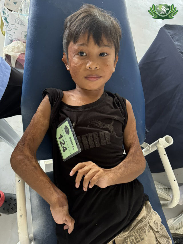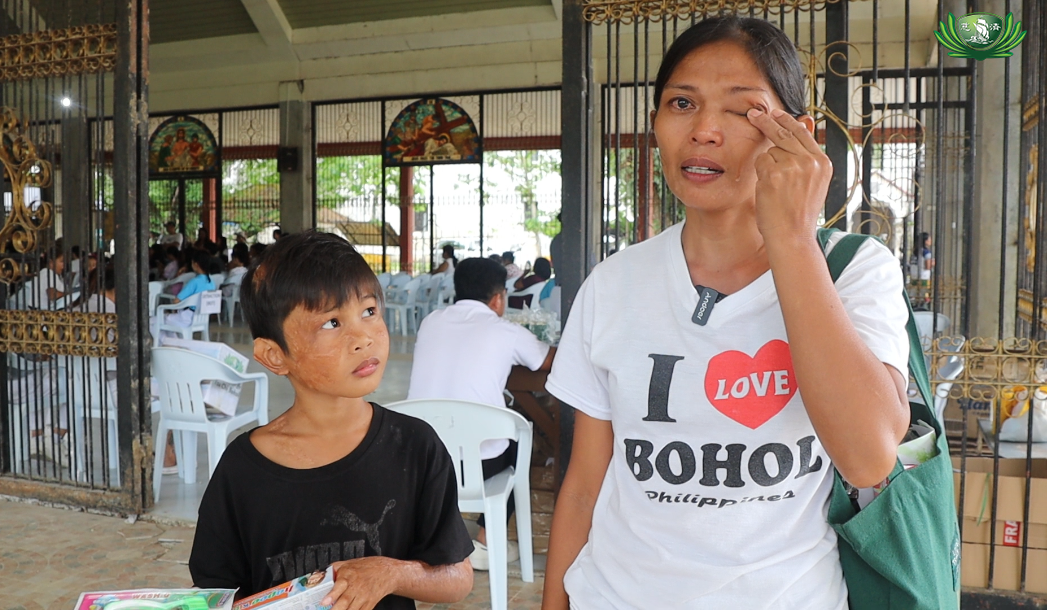 A touching moment unfolded as Carlita Boboli, mother of 8-year-old Niño Jabasa, expressed deep gratitude. Niño, who suffered severe burns to his body brought about by an accident when he was just 2 years old back in 2019, attended the dental mission with his mother. It can be recalled that Tzu Chi met Niño at a local hospital when he had started recovering from his burnt wounds and learned that several good Samaritans had already given their support for the child enough to cover his medications. Tzu Chi volunteers went back to see Niño gifting him with toys.