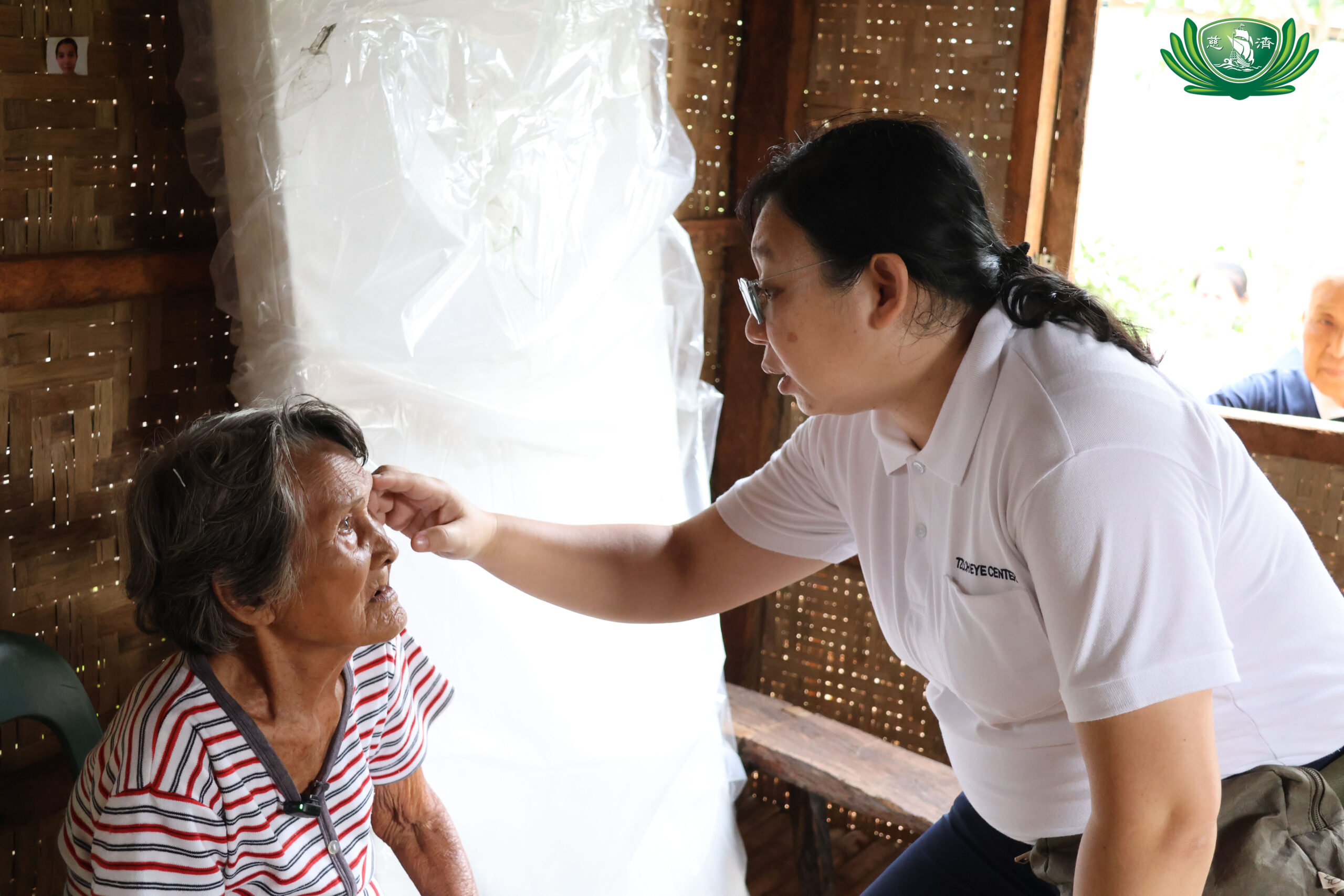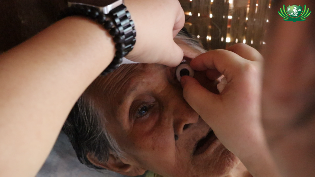 Regina Amotan (89), wife of Crisologo, had long been living with the loss of her left eye due to an infection. Moved by her situation, Dr. Adriene Lim from the Tzu Chi Eye Center in Manila made a commitment to return.