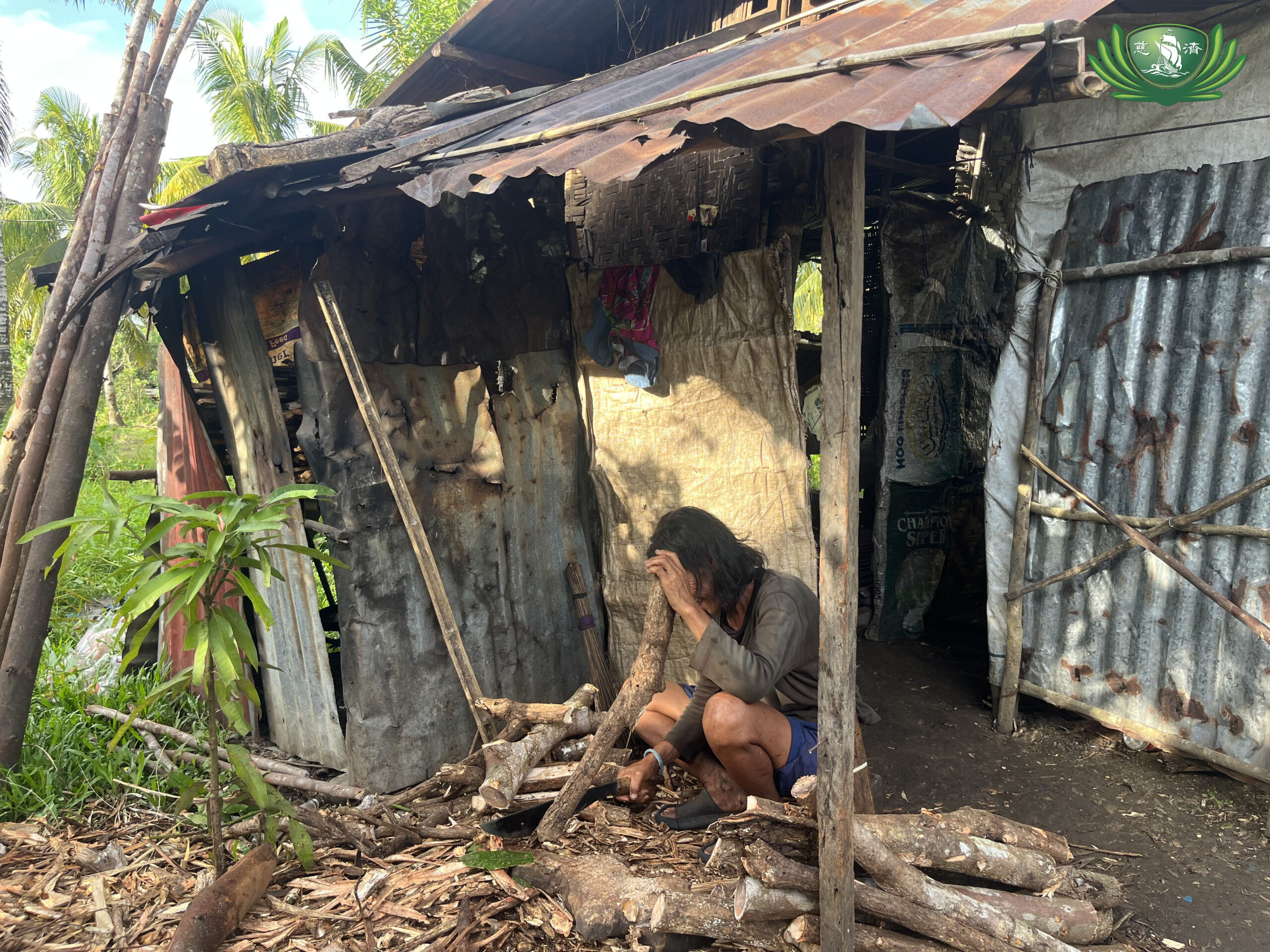 65-year-old Alfredo Risada would take all sorts of odd jobs available, “to be able to buy rice and put food on the table”, he said. As a farmer, harvesting the rice fields is not permanent and would depend on the season so he would rely on making firewood which is a staple since he uses the surrounding branches of mango trees that takes days to do and sold for 12 pesos per bundle of 6 pieces. His wife, Yolanda, took on small jobs when available as well. They have 12 offsprings and only one lives with them, the rest have their own families and can barely survive on their own. Originally from Cebu province, the couple had long moved and settled in Bohol. Their house begun to worn out as years passed, which was worsened by the onslaught of Typhoon Odette in December 2021, Alfredo tried to rebuilt their home patch by patch using salvaged materials that gradually deteriorated, leaving them unsheltered and exposed to rainwater seeping inside.