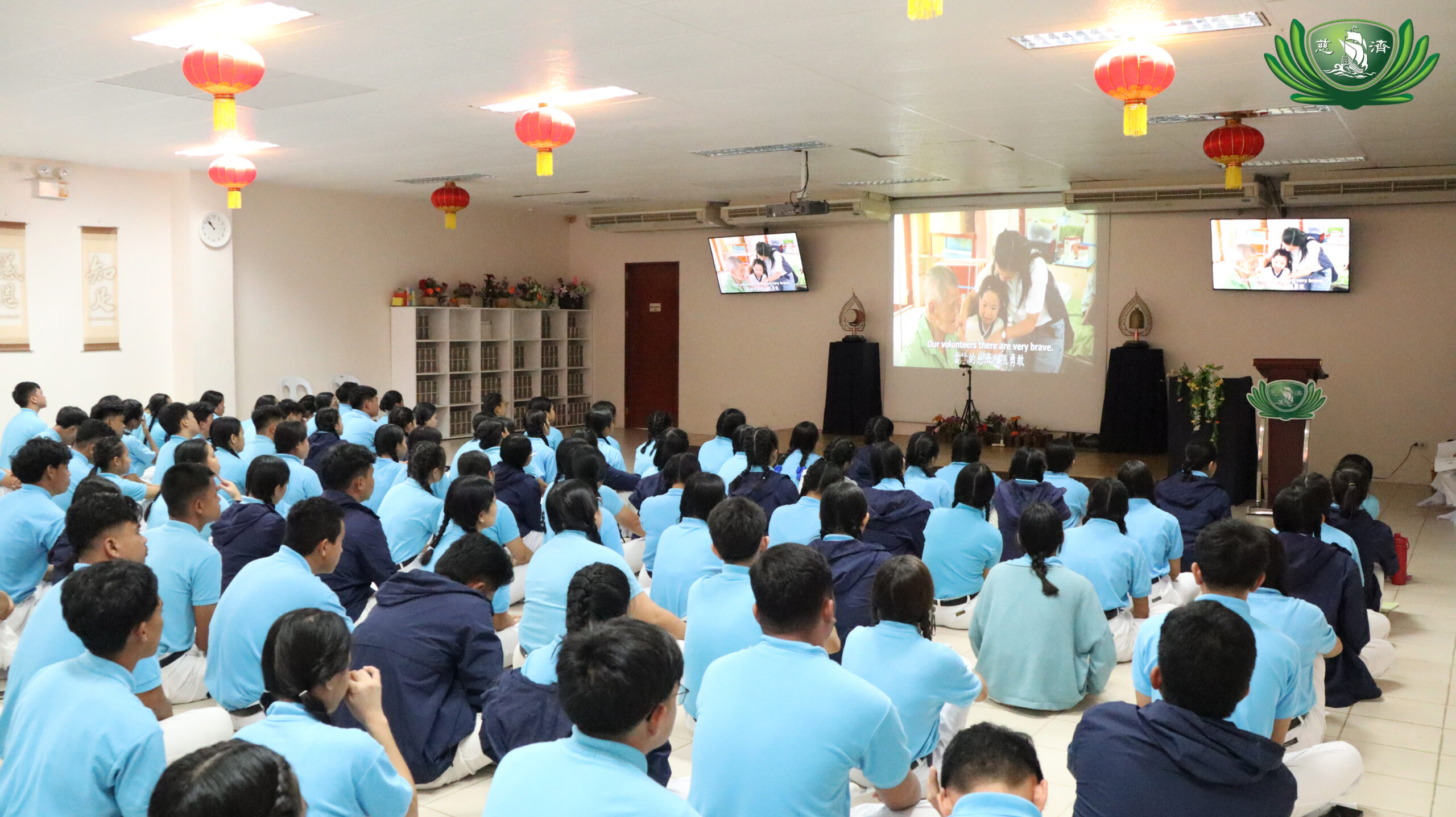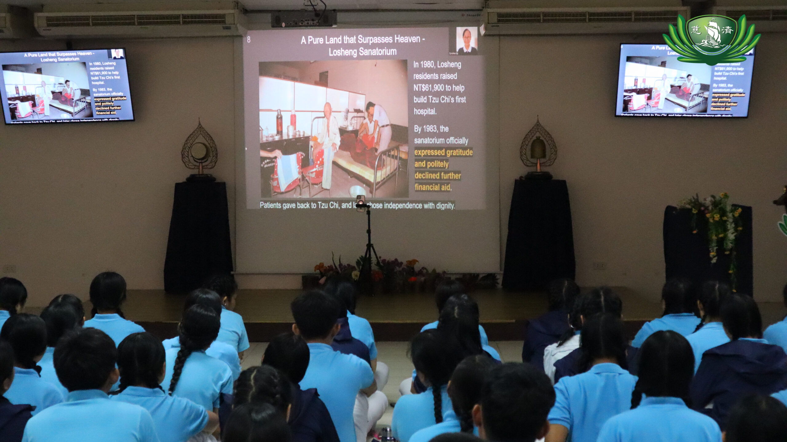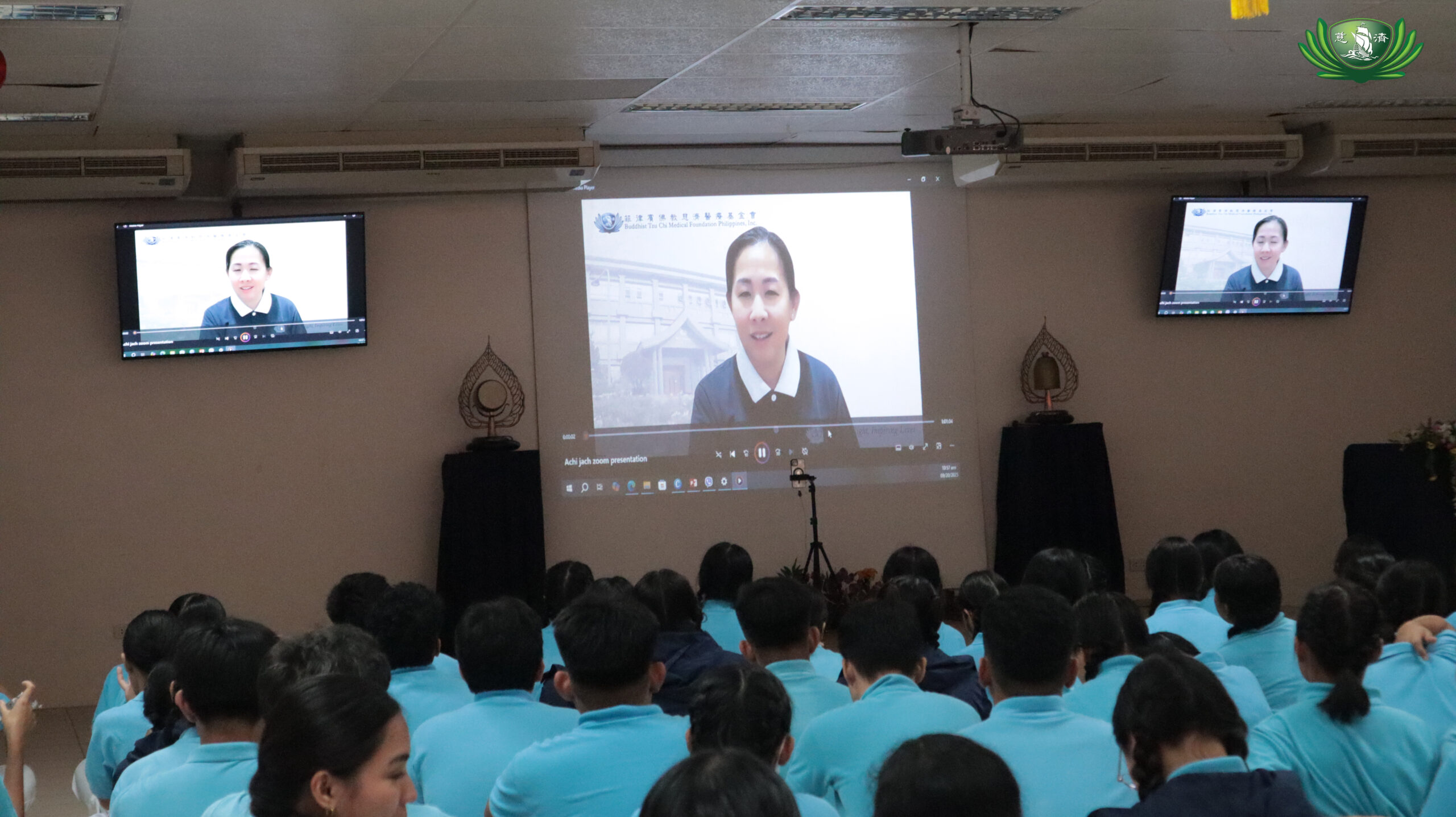 The first morning session featured a virtual talk by Tzu Chi volunteer Sister Carolina Uy, who spoke about living with compassion through doing good deeds in everyday life. She shared inspiring stories, including The Pure Land that Surpasses Heaven and the resilience of the Longshen community—leprosy patients who, despite physical challenges and societal discrimination, found purpose by crafting lotus flowers, symbols of purity, enlightenment, and the potential for transformation, to donate. Despite their circumstances, they aspired to cultivate these virtues within themselves and share them with others. Their determination to spread kindness rather than despair served as a powerful reminder to the scholars that even amid suffering, one can choose to inspire hope in others.