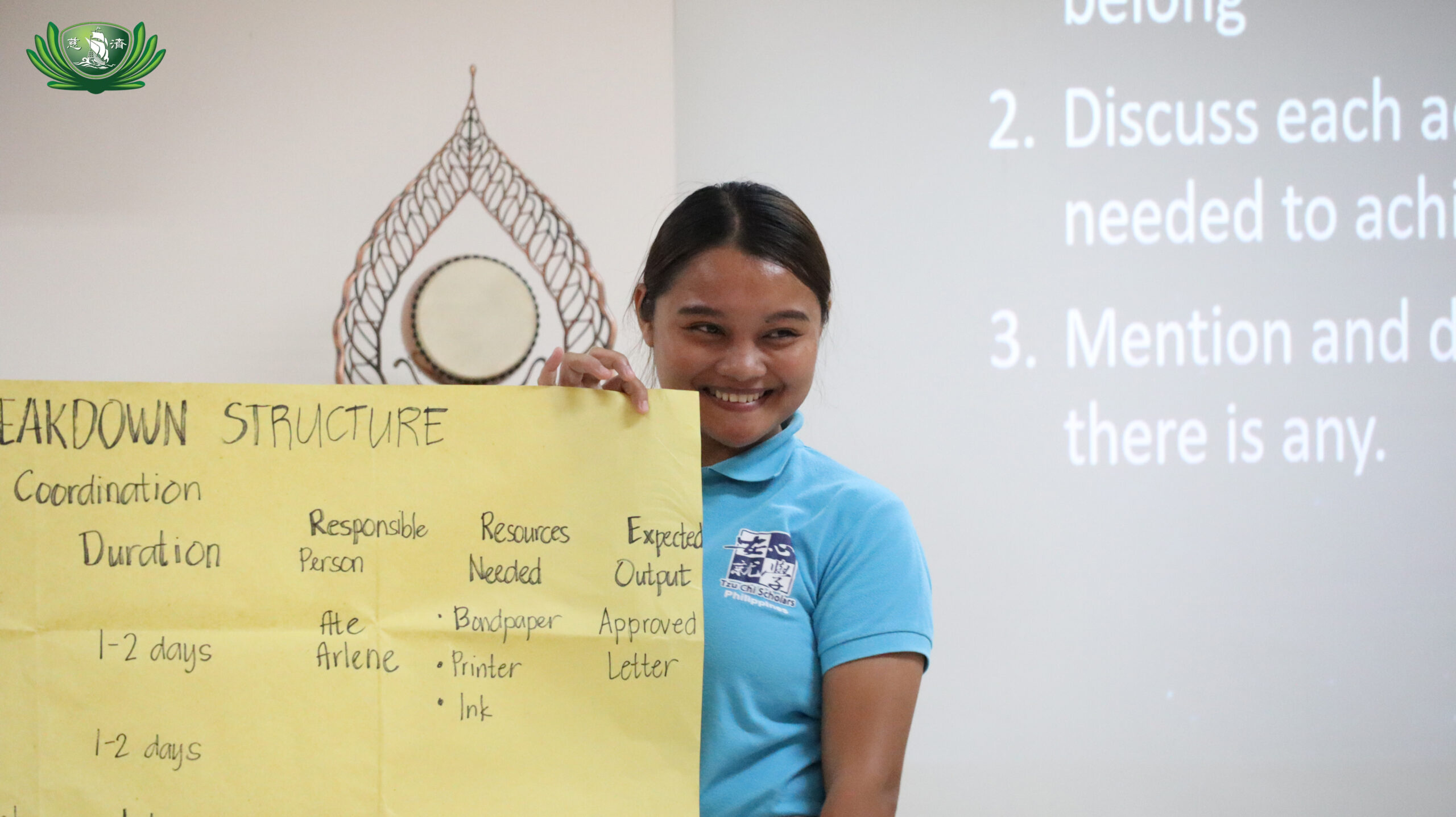 In the afternoon session, Brother Mulric Sarmiento, a Tzu Chi training commissioner in Cebu and assisting to coordinate Tzu Chi Bohol’s Educational Assistance Program, has been serving Tzu Chi for 13 years. He discussed the basics of project planning and guided the scholars through a group activity. He expressed how heartwarming it was to share his knowledge, saying, “I am very happy to impart a portion of what I know to the scholars. It is always a pleasure to volunteer here in Bohol despite the distance, because I want to contribute to the growth of our scholars and help prepare them for their future projects.”