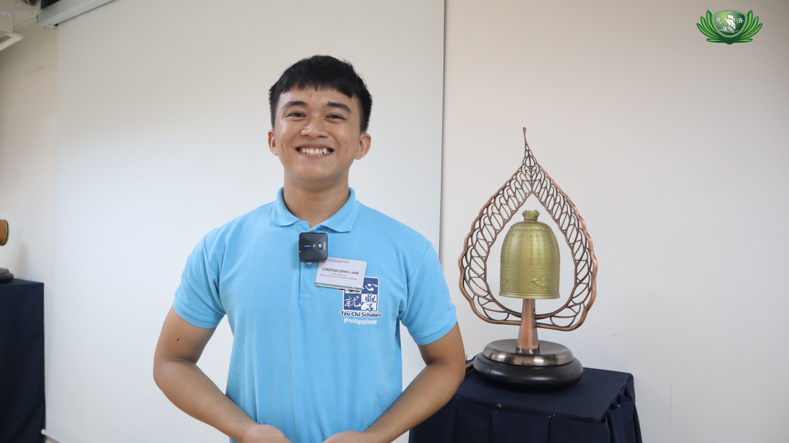 Fernando Renopal Jr., a first-year BS Information Systems student at Tagbilaran City College from Maribojoc, also attended the humanity class on the second day despite his condition. Fernando benefitted from Tzu Chi’s medical assistance program back in September 2020 due to Hirschsprung disease and underwent pull-through surgery. He expressed his gratitude for Tzu Chi’s consistent support, ‘I am thankful because they helped me even during my difficult situation, and I am also grateful to be included as one of their scholars. He recalled how Tzu Chi provided him with a laptop, food, and vitamins, even after a complicated surgery which still left him with a slowly healing colostomy wound in his abdomen, making it difficult for him to fully recover until now. ‘Even then, Tzu Chi did not abandon me and continued to support me,’ he added. Reflecting on his journey, he shared, “Despite the challenges, I still go to school. I change my clothes, change the dressing of my stomach, and do my best to continue and to keep up with my studies.”