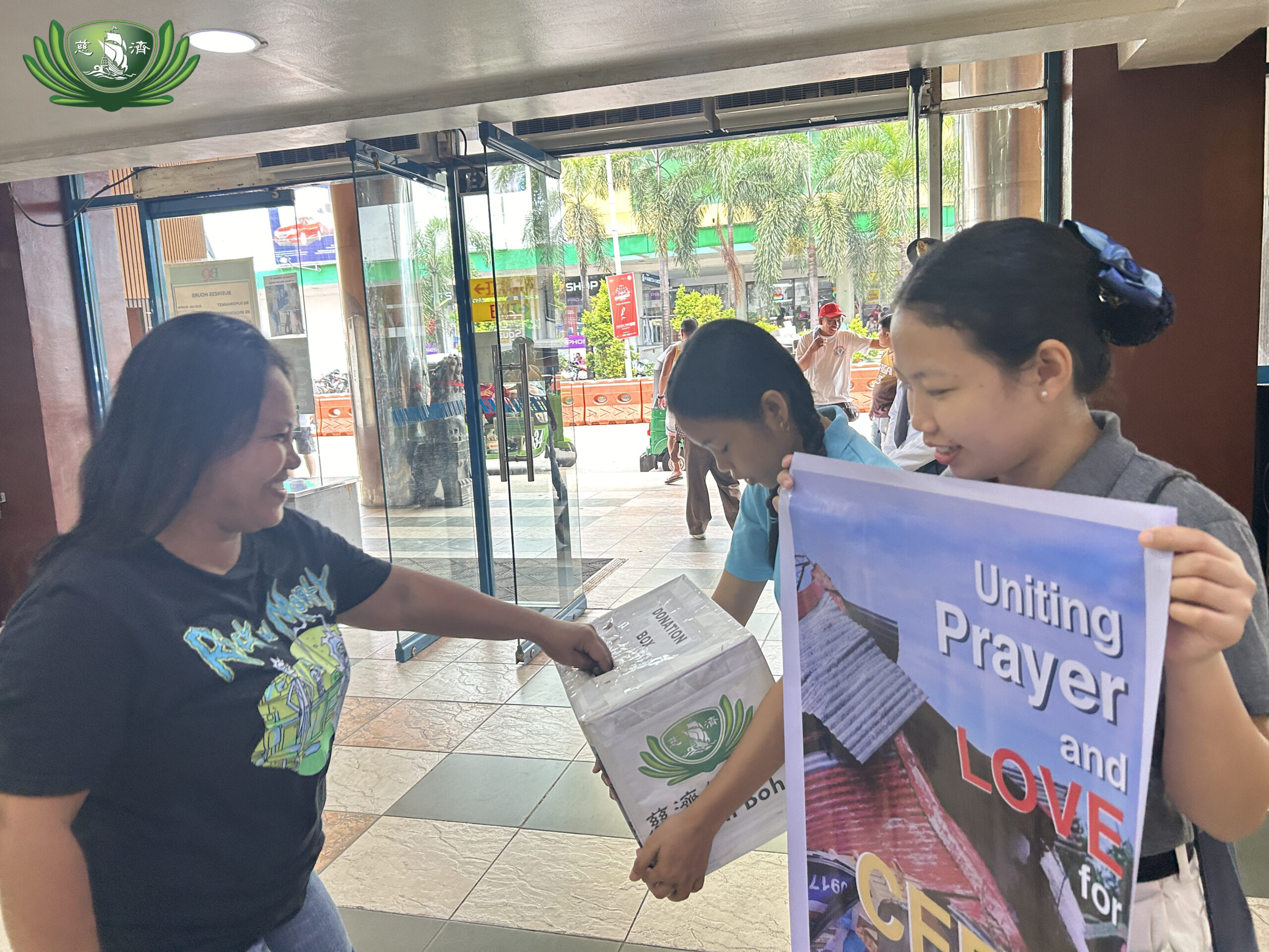 Tzu Chi training volunteers, Tzu Chi Youth, Tzu Chi Scholars and Tzu Chi Staff set out early in the morning driven by the urgent need to gather essential resources through financial donations to aid the victims in Cebu who are currently facing displacement, damaged homes, and a lack of basic necessities in the aftermath of the tremor.