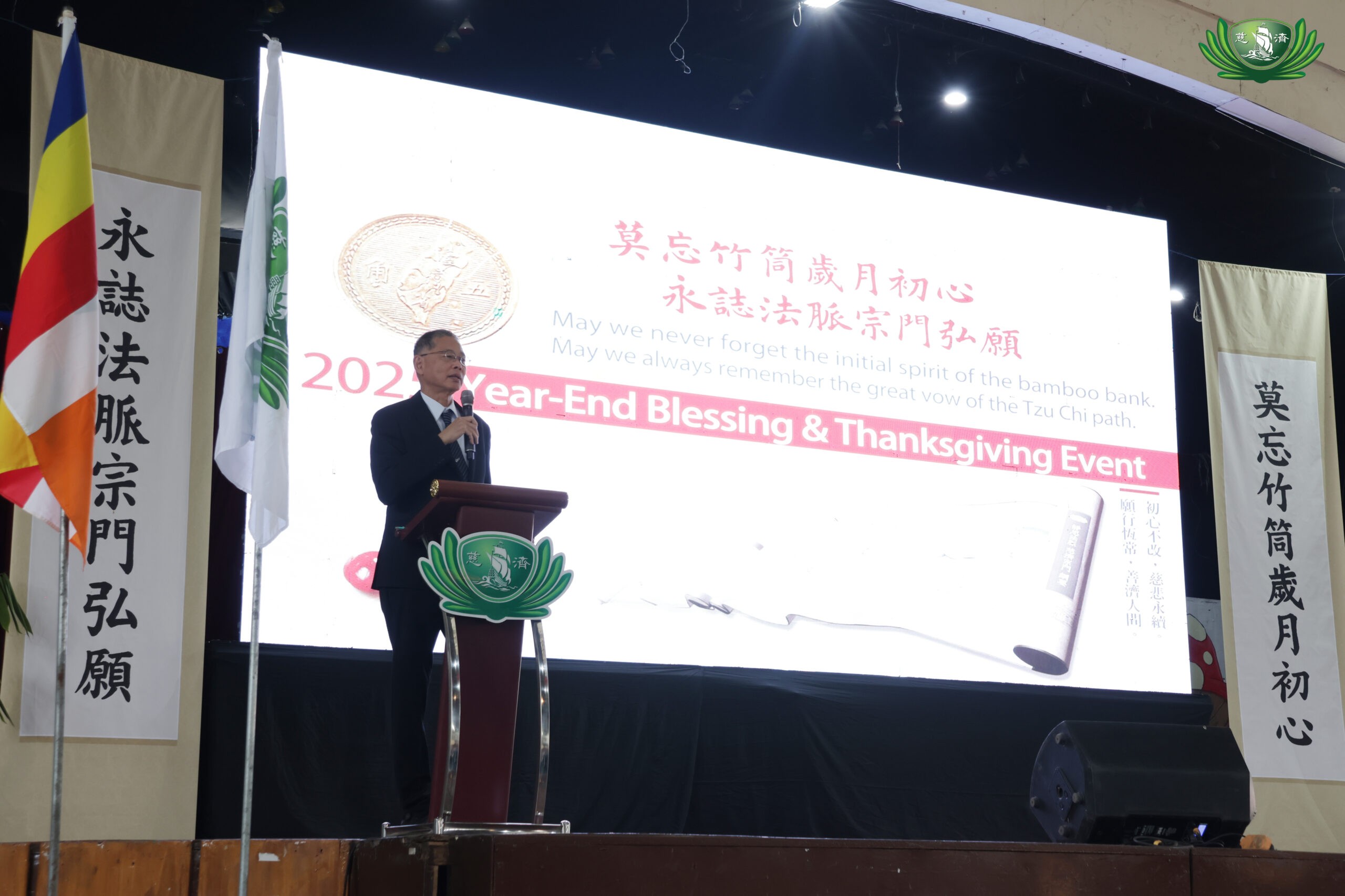 Mayor Dexter Muneses Ancla of Inabanga expressed deep gratitude for the occasion, describing the Year-End Blessing as a meaningful gathering of compassion. He thanked Dharma Master Cheng Yen for the red packet (ang pao) and for the foundation’s unwavering aspiration for a world free from suffering and disasters. On behalf of the many people assisted by Tzu Chi, he conveyed appreciation to volunteers around the world for their selfless service.