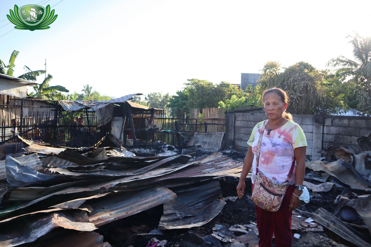 During the fire site survey, Tzu Chi volunteers saw 56-year-old Estrella Bazarte in tears while she looks on to where her house and “sari-sari” store use to stand. She is from Catigbian, Bohol and had just moved to Tagbilaran along with her husband who works as a tricycle driver in hopes for them to save up for her gallstone surgery.