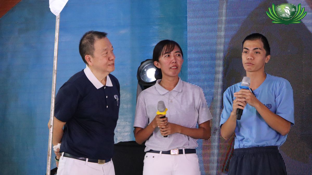 During the last day of the youth camp, Tzu Chi volunteer, Brother Alfredo Li’s talk was briefly interrupted after he recalled an experience a few years back in Ormoc when he was mugged by a drug addict. Instead of seeking justice, he let the perpetrator go and forgave him despite the severe physical injuries he sustained that time. As Brother Alfredo’s story was similar to Roel’s, he was once more called back to the stage. Here, Brother Alfredo compassionately gave a striking advice to Roel, “ Master Cheng Yen said, when we meet challenges, we should overcome it with wisdom and compassion, not with hatred and anger. So I tell this to you now, give it up (anger and hatred), let go and you move on for a better future, then let’s have a reunion again after 5 years, I want to see you become a better man by then.” In an instant, Roel affirmed to the audience that he will not seek revenge against his former friends anymore, drawing a loud applause from the crowd.